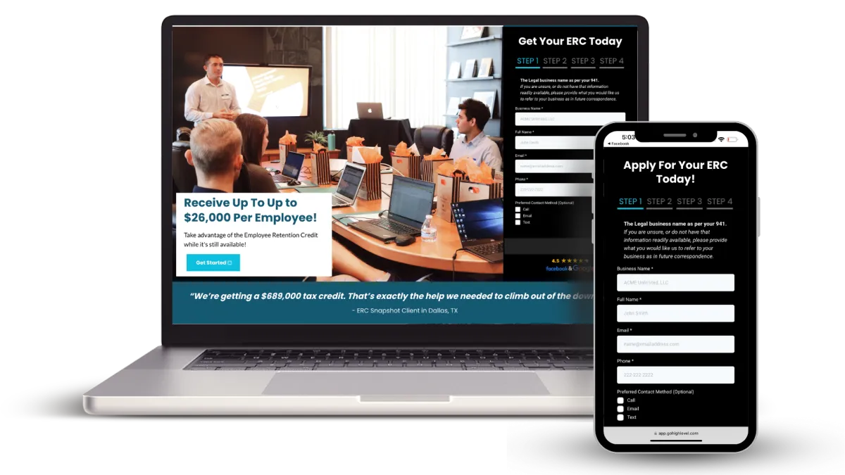 A complete turnkey lead generation and customer nurturing system for ERC Specialists.